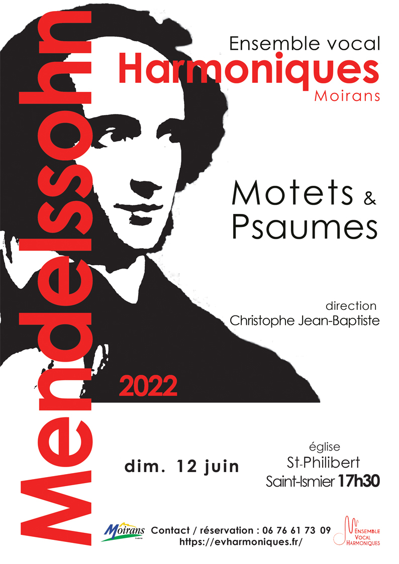Après deux années de jachère forcée, l’Ensemble Vocal Harmoniques est heureux de renouer avec le public avec un programme a capella consacré à Mendelssohn. Il comportera principalement des œuvres sacrées, dont ses grands motets et psaumes, où l’on retrouve sa profonde admiration pour Jean-Sébastien Bach, ainsi que de petites pièces aux harmonies très inspirées composées pour le chœur de la cathédrale de Berlin. Il sera complété par quelques pièces profanes de Mendelssohn et de Schumann auquel le liait une solide amitié.